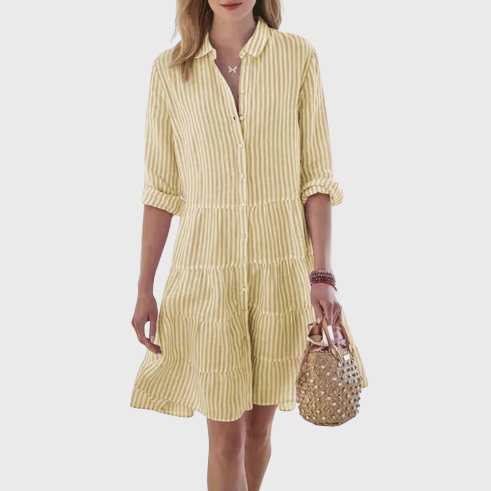 Indossa il sole con l’Abito a Righe, il compagno leggero e spensierato delle giornate estive. Che tu stia sorseggiando tè freddo in veranda, passeggiando sul lungomare o godendoti un caffè nel tuo locale preferito, questo abito porta con sé un’eleganza semplice e intramontabile.