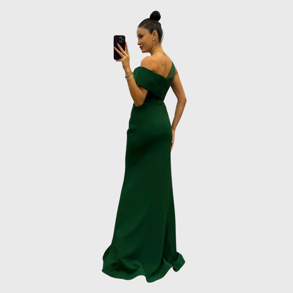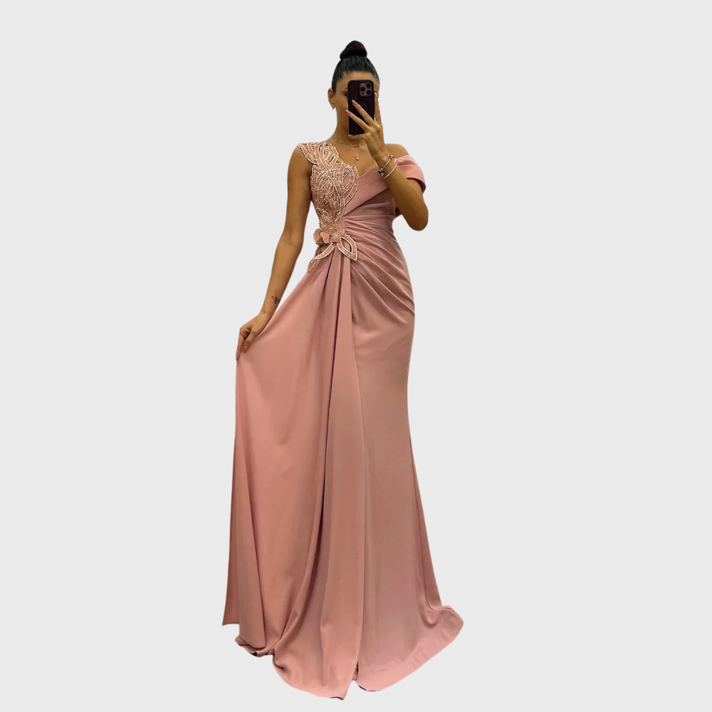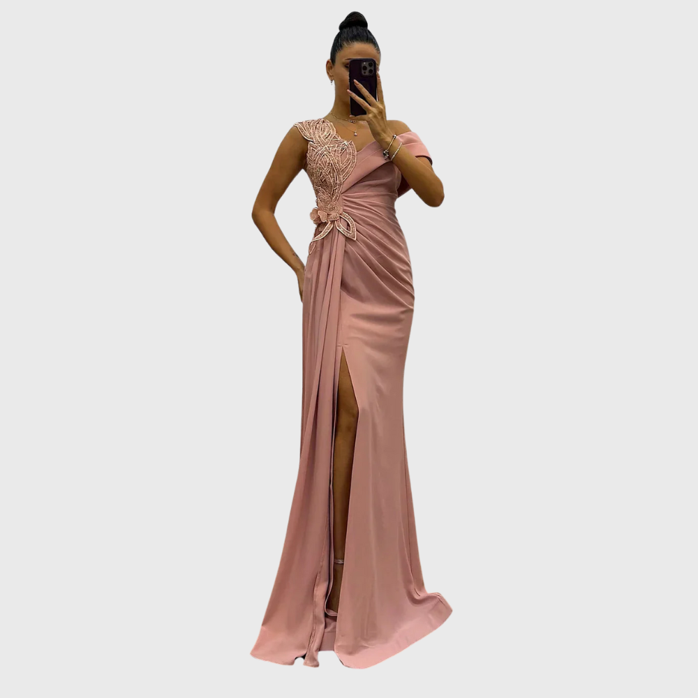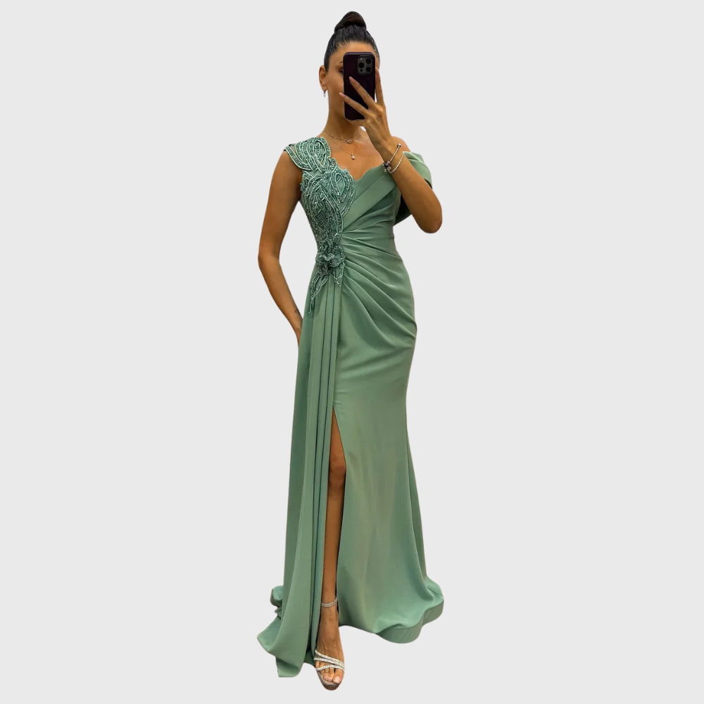 Abito da Sera Monospalla – Eleganza con Dettagli Ricamati