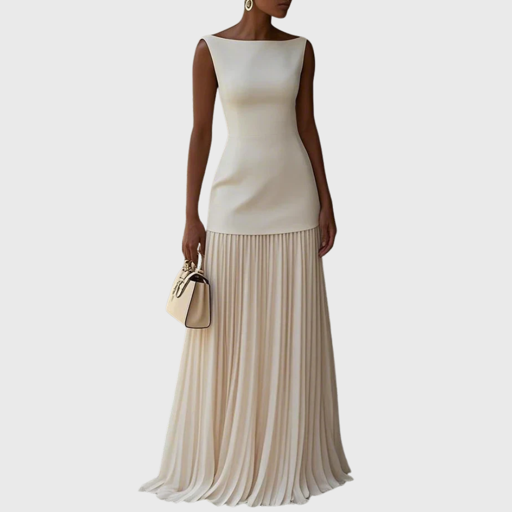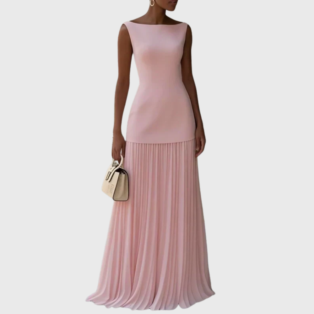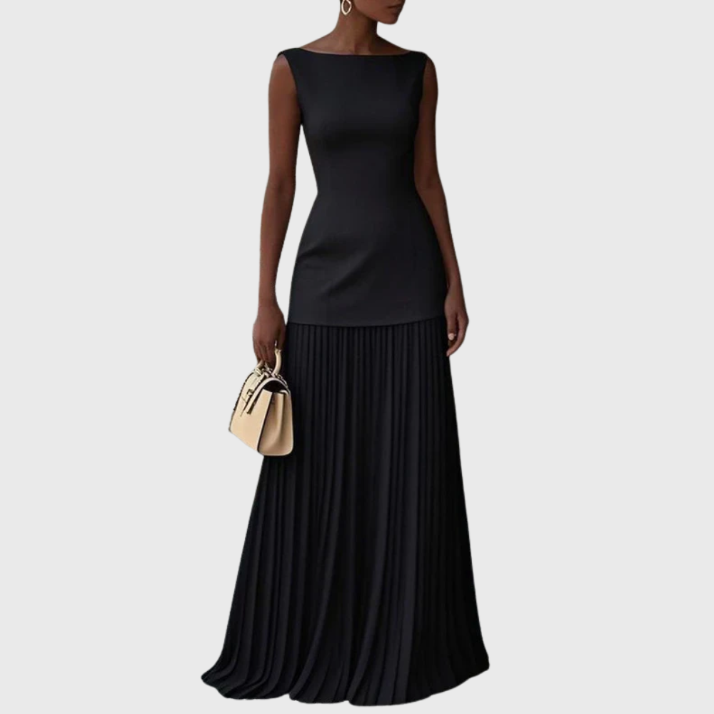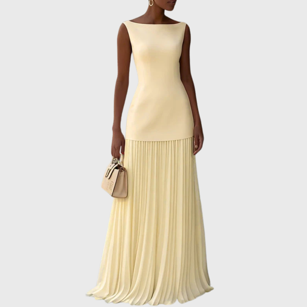Abito lungo senza maniche plissettato