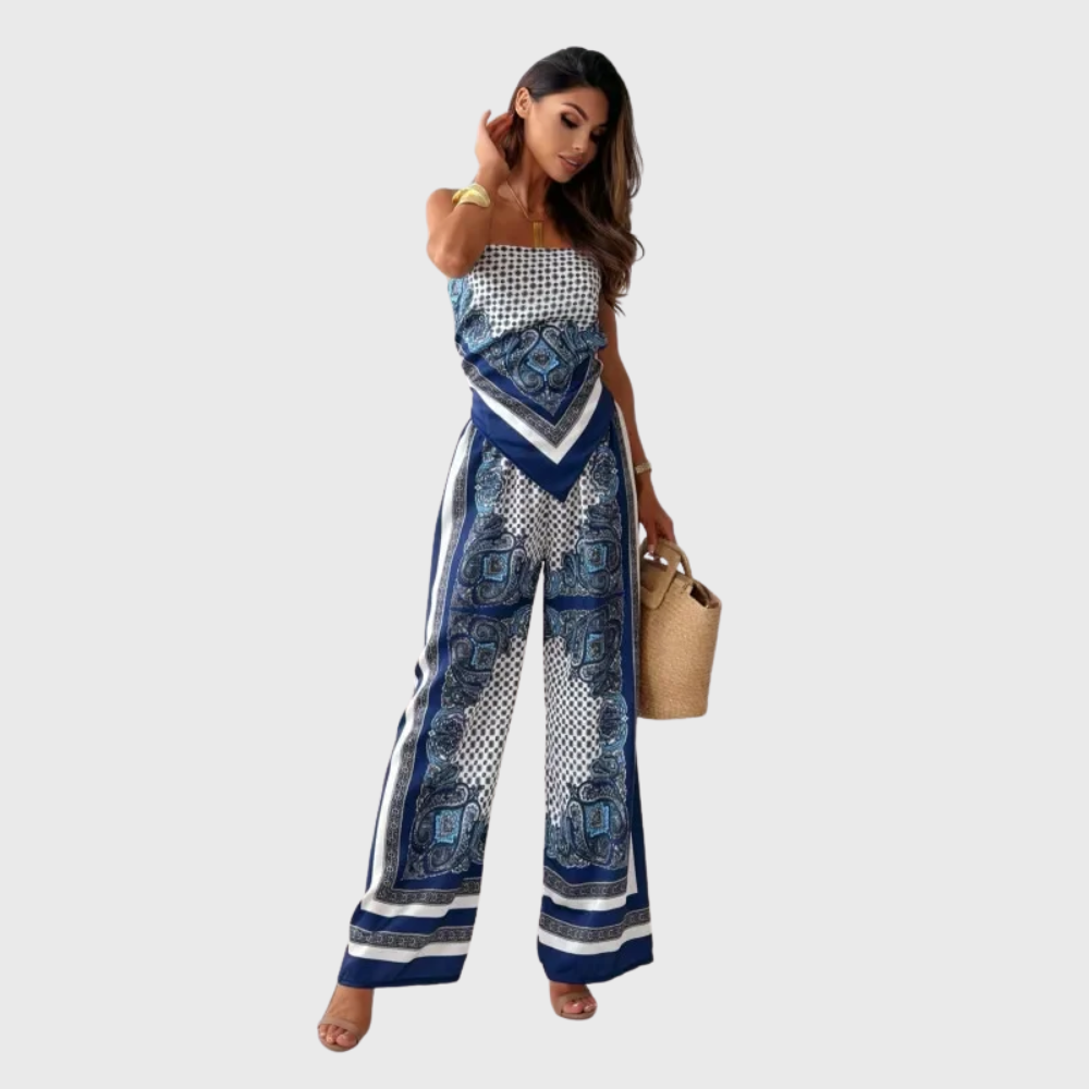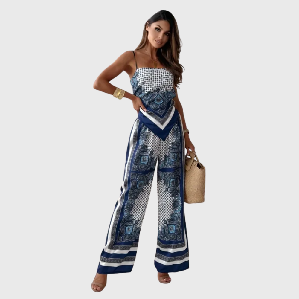 Rinnova il tuo look con questo set due pezzi che unisce eleganza e praticità. Il top aderente valorizza la figura, mentre i pantaloni con fiocco aggiungono un tocco giocoso. Realizzato in morbida miscela di cotone elasticizzato, è leggero, traspirante e perfetto tutto il giorno.