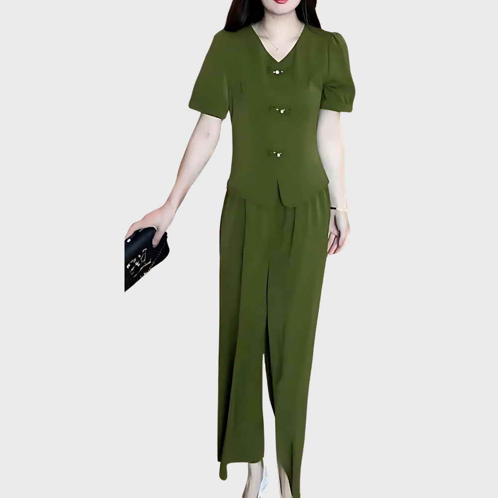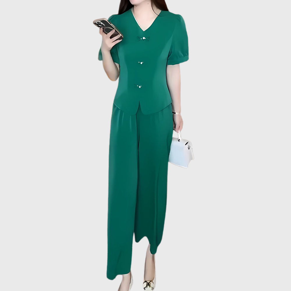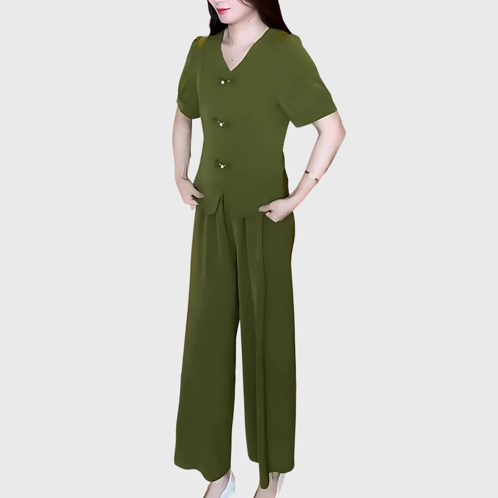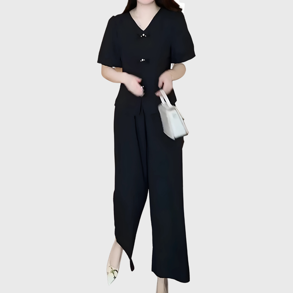 Una struttura morbida incontra il fascino femminile in questo set che combina comfort e stile con naturalezza. Perfetto per giornate calde o occasioni semi-formali, è l’outfit pronto da indossare che dona un look curato senza sforzo.